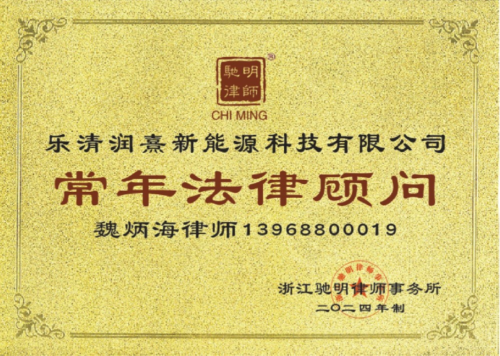 常年法律顾问单位:乐清润熹新能源科技有限公司