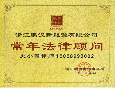 常年法律顾问单位:浙江鹏汉新能源有限公司