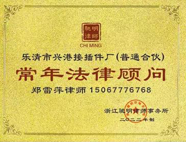 常年法律顾问单位 :乐清市兴港接插件厂(普通合伙)