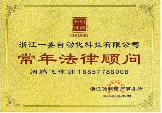常年法律顾问单位:浙江一盛自动化科技有限公司